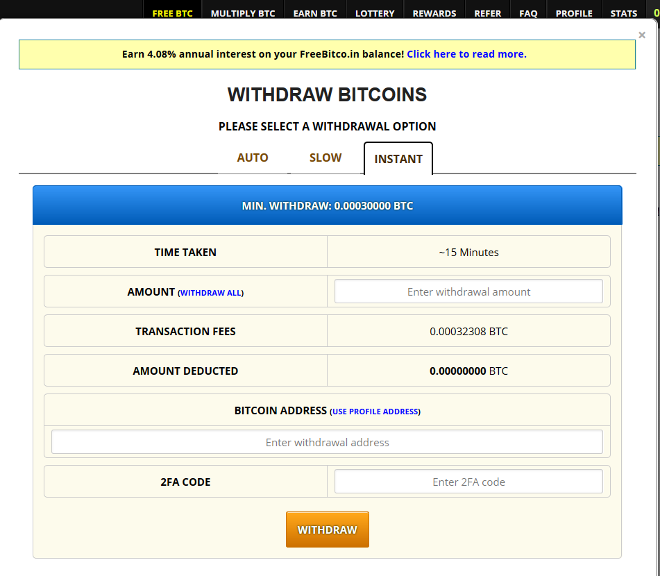 With this option you can withdraw your money instantly, however transaction fees will be high.