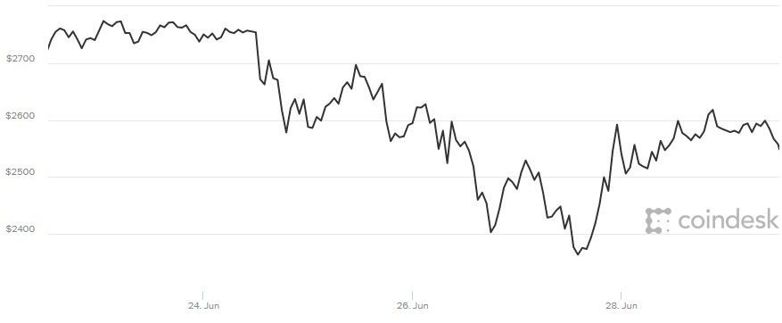 According to Coindesk after a brief dip on Monday prices fell below $2400, but recently pulled a sharp reversal and are now back up to approx $2500! Past 24hrs the low for Bitcoin was $2485.5535