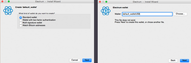 Choose what kind of wallet this will be; standard, two-factor, and multi-signature. You can also name the wallet.