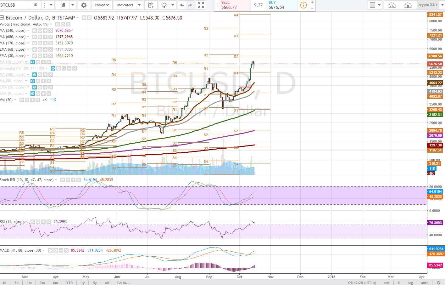 BTCUSD - Technical Analysis October 16, 2017 - current price $5670