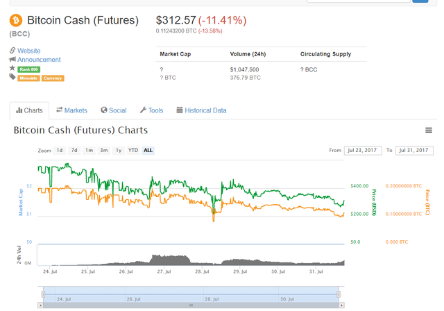 At 7pm I expect extreme volatility on bitcoin. A push higher could really pave the way for new highs - but - I suspect there will be massive sell orders on both bitcoin and BCC that out pace eachother and cause it to crash - or what may feel like crashing. So what happens when you take liquidity away, same thing that happens when everyone heads to the fire exit at the same time.