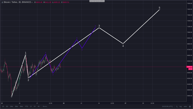 My ew main count for btc. Blue wave 3 in progress with target of 6850$