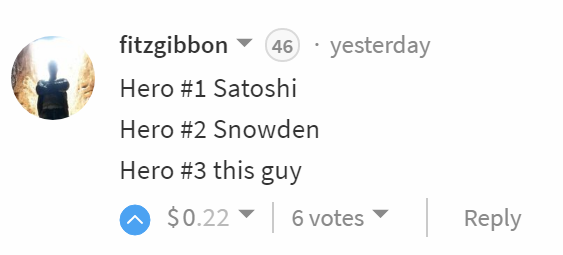 His address and the QR code are below. I encourage everyone to consider sending him a tip. He took a huge risk, got fired and the exposure for the crypto space is pricless: