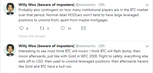Bitcoin and market analyst Willy Woo is so far so good as he correctly predicted in month of May that Bitcoin will go below 6000$ as he don't see the good support at 7000$ level and he never believe that the Bitcoin price will go below 5000$