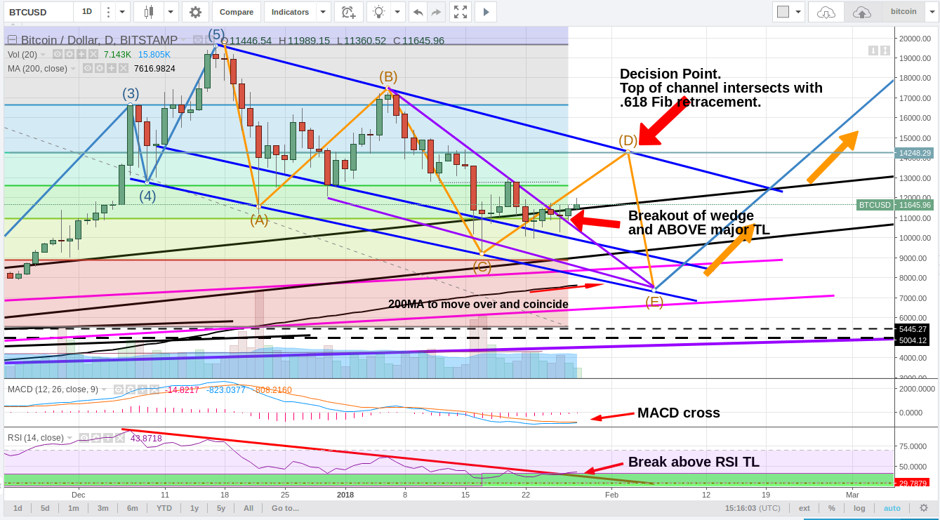 Preferably the latter. If we can have the healthy correction BTC needs, I will become a super bull again. Honestly, when BTC jumped to $20k so rapidly in December, it was the first time in about 3 years that I became bearish. I am looking forward to becoming my old bullish self again. But I'd love to see us hit that $8k marker first. If we don't, and we simply breach $14.3k, I may still become bullish, but it won't be with the same enthusiasm.