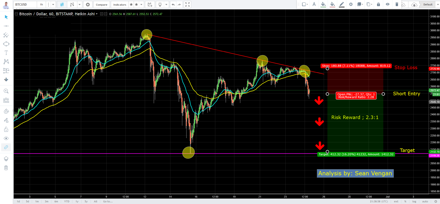 BITCOIN DESCENT HAS STARTED - 2.3:1 Risk Reward Ratio - current price $2,590.99