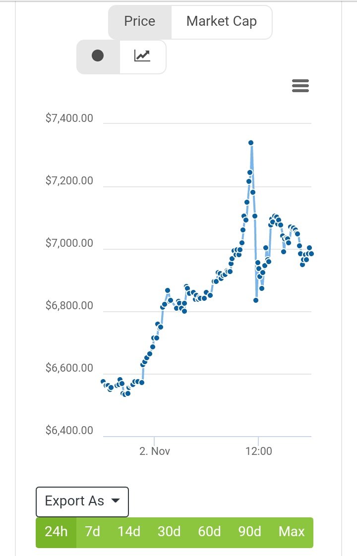 It went up like a rocket to 7200$ and then came down like a comet to $6700 and then again rose and then came down.