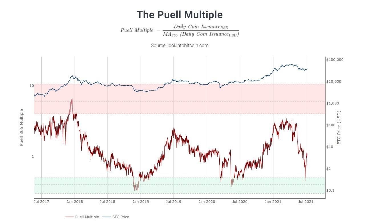 Hell of a bounce out of the green zone this week for the Puell Multiple.