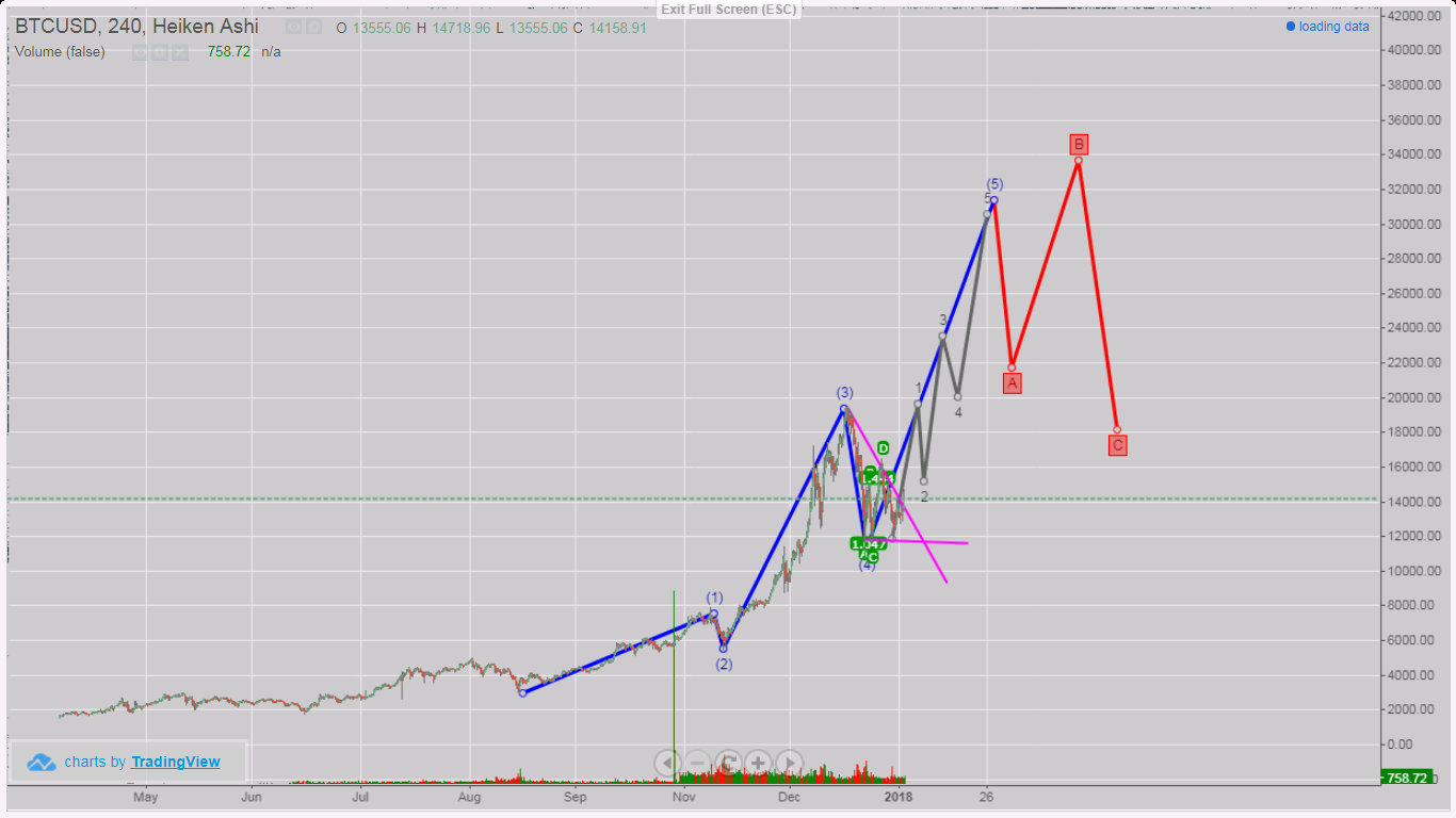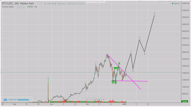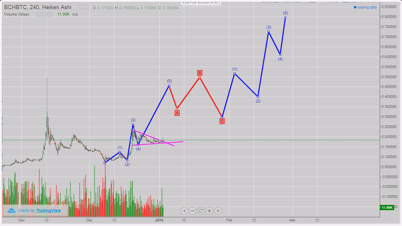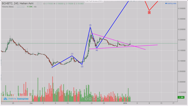 Bitcoin Cash also seem to break out of a triangle, and as I count the waves it could go like this