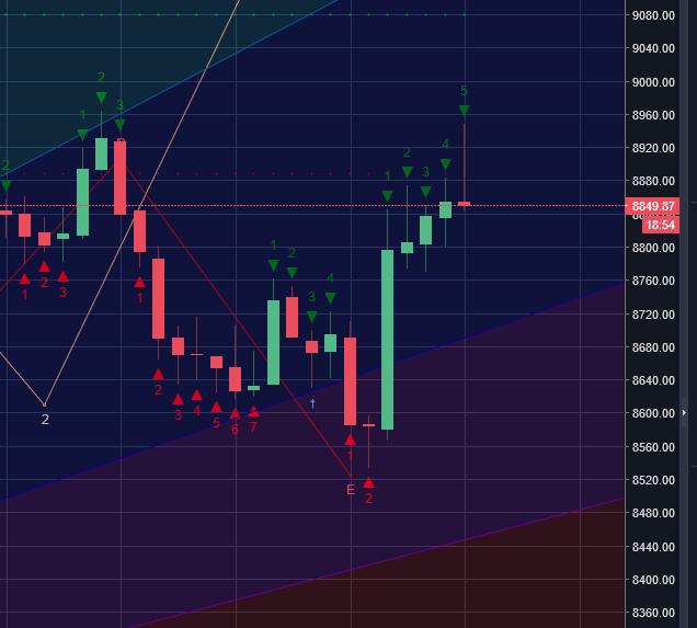 I still think we go up from here, based on the 1 hour chart. Spot on the E wave.