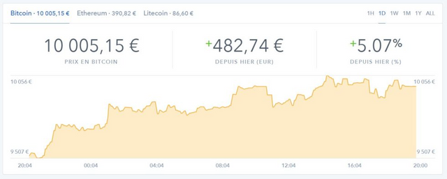 When writing this article, Coinbase posted a price of 10,005 euros for digital currency.