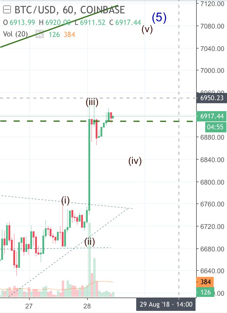 Currently seems that BITCOIN is completing a 4th wave correcting line after having risen consistently from 6700 to 6900 USD...