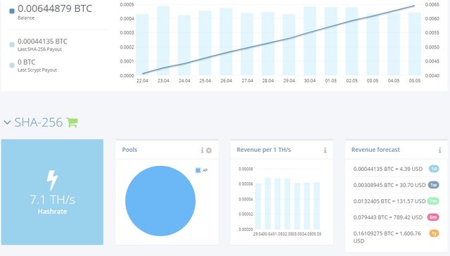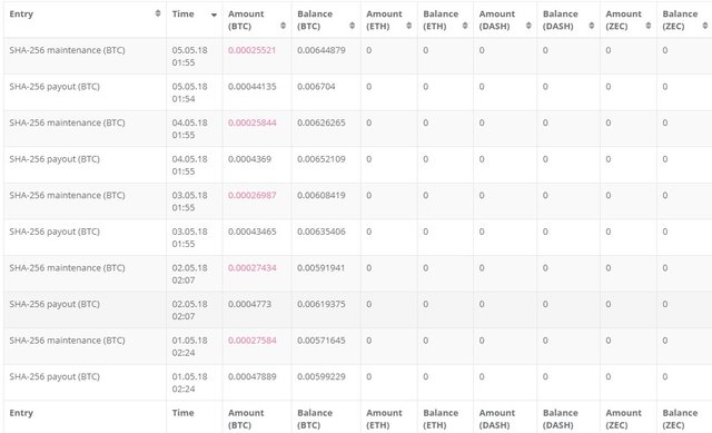 Bitcoin Cloud Mining Contract earned 0.00044135($4.38) and maintenance fee 0.00025521($2.53)