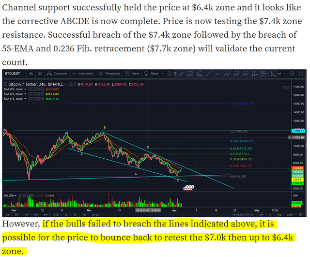 Quick preview of my past TA - Bitcoin Technical Analysis - 03 April 2018.