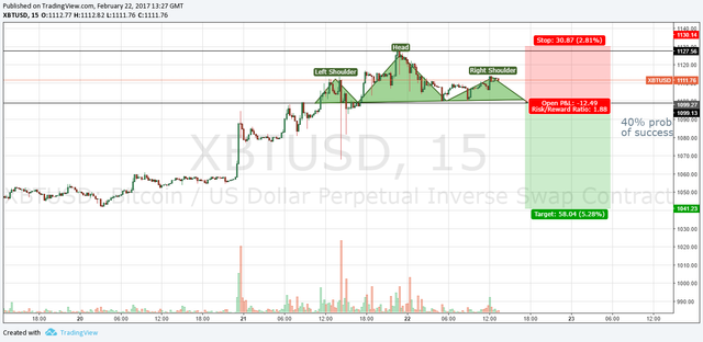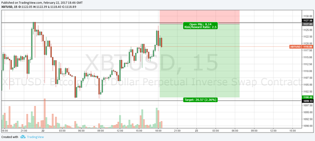I'm looking at getting into a trade in Bitcoin now, using the 15 minute charts.