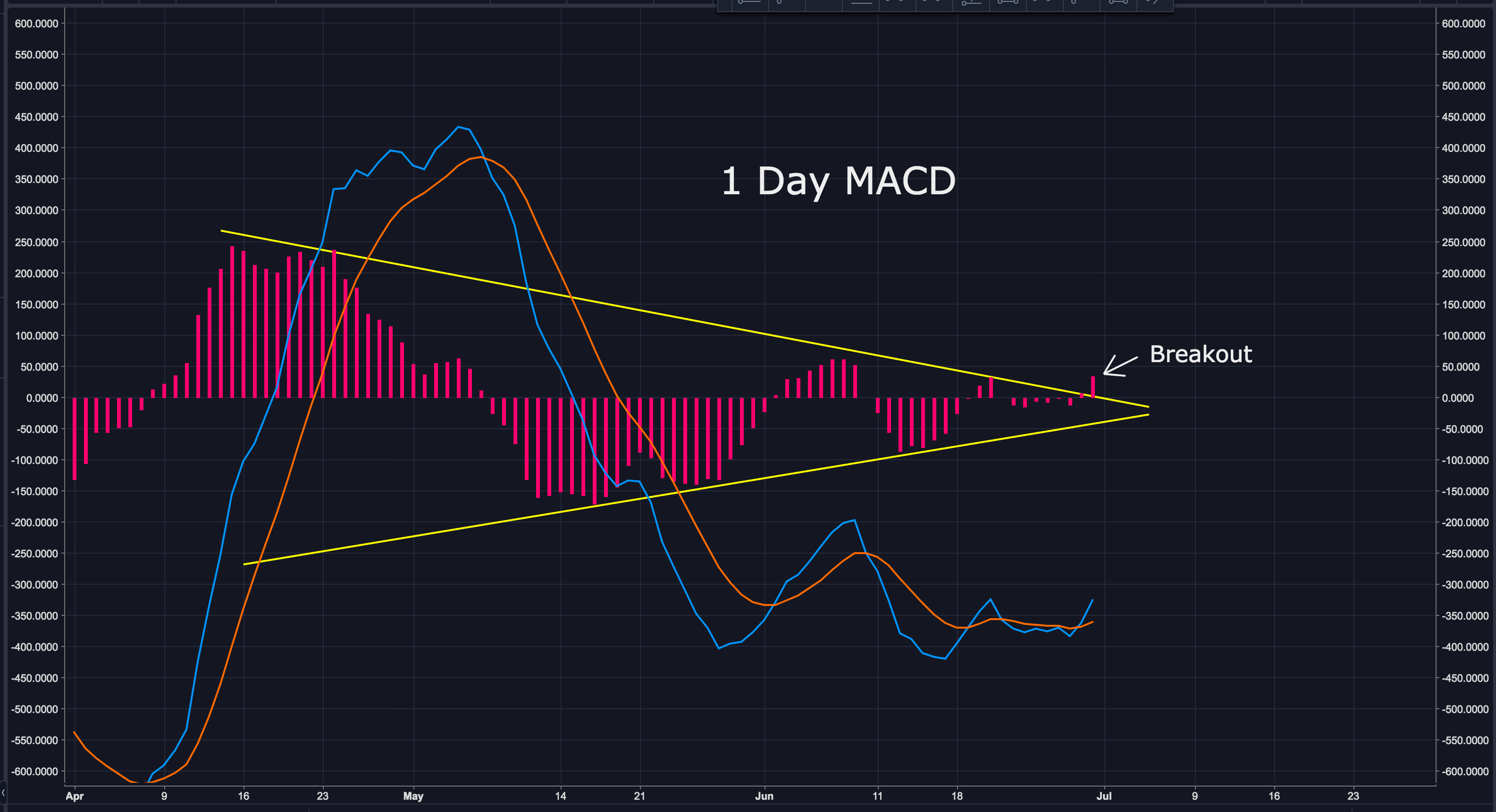 4 Hour MACD Histogram Broke Above 52 for first time since Early May: