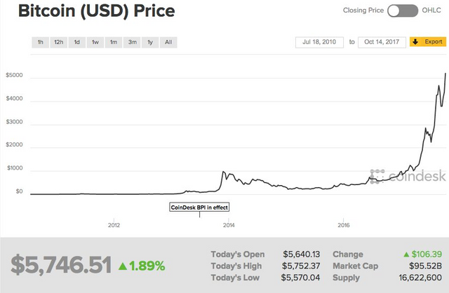 In a tweet over the weekend, Assange posted a screenshot of bitcoin prices on July 18, 2010 and October 14, 2017 on industry website CoinDesk. In this period, the price of bitcoin went from $0.06 to around $5,814. This represents a 9,689,900 percent increase.