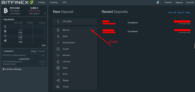 On the next page choose and click the currency you want to deposit. In this example, we are going to use BTC deposit.