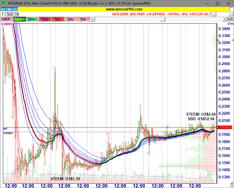 Some of you may have also noticed that the high SBD price has also increased the demand for STEEM, as it is the primary way that users can "print" or "mine" new SBD, and over time arbitrage the pair back into closer line with one another. So it's likely that as long as SBD simply holds these higher price levels, STEEM will slowly creep up in an attempt to somewhat converge with the elevated SBD price. You can see this this dynamic unfolding on a STEEM/SBD chart: