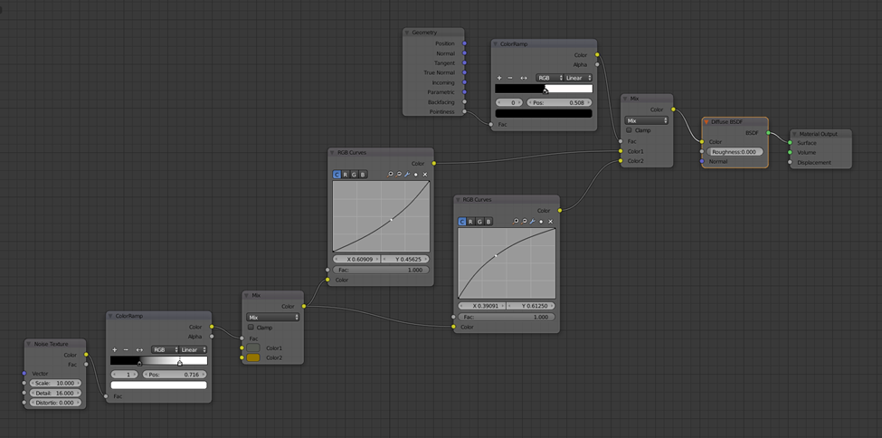 In this post I will be upgrading the node setup for a cycle material that I previously explained in the post Pointiness Future in Blender Node Setup – Give Shape To Your Model. You can check that post for a step by step detailed explanation of creating this basic material, otherwise here is a picture from the final setup of that post, that we will use and start with in this post, and if you are interested only in this future.