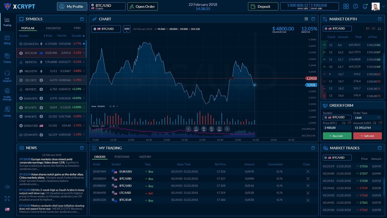 The XCRYPT exchange is committed to provide all the necessary features that will elevate growth and adoption of cryptocurrency in daily life. The XCRYPT provides more competitive advantage over other Crypto exchanges present in the market today. On the XCRYPT exchange users get more advanced tools and features which helps pro traders and investors to execute their orders very efficiently and conveniently.