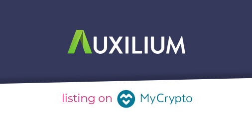 Auxilium lists on MyCrypto; TrustWallet, hardware wallets and website