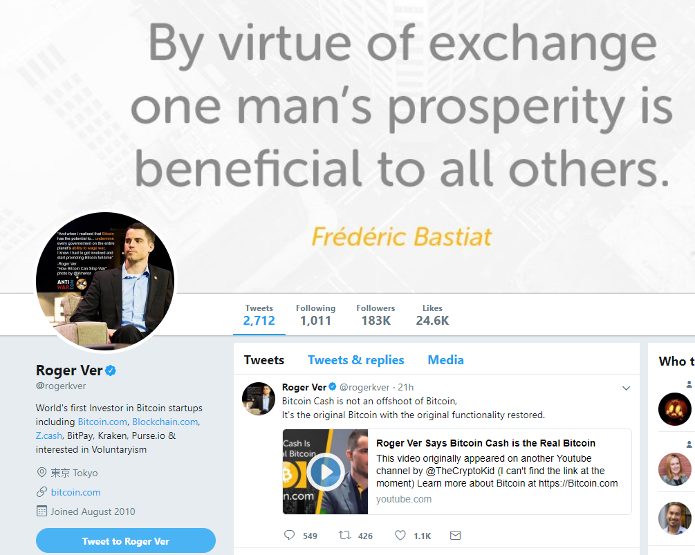 Ver is referred to as “Bitcoin Jesus”. He was one of the early investors in bitcoin and bitcoin startups, and has become one of the world’s first “virtual millionaires.”