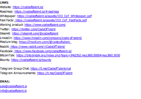 Whitepaper: https://codeoftalent.io/assets/ICO_CoT_Whitepaper.pdf