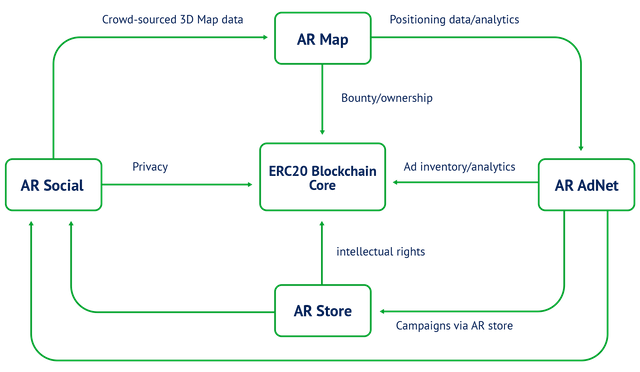 ARROUND uses blockchain and augmented reality to build an ecosystem consisting of four integrated elements: a disruptive universal advertising network, an augmented reality marketplace, a social platform, and the next generation AR map that will create a backbone for AR projects around the world.