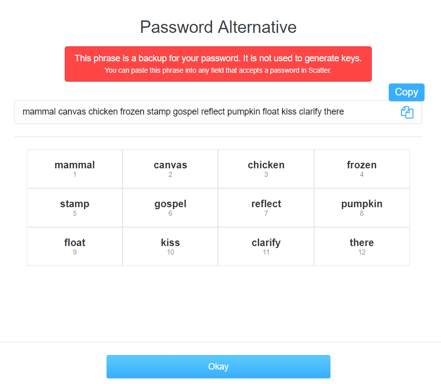 After writing down the password keywords, you can click on “Okay” button and proceed to the next stage.