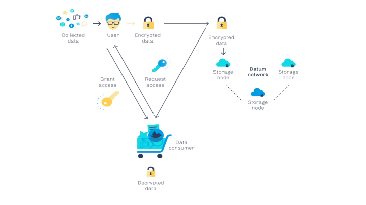 Through the use of smart contracts, Datum allows users to upload their encrypted data to decentralised storage nodes, only making them accessible to people who they choose . In this manner, people can not only decide who can access their information, but also make money from granting interested parties access to their data.Storage capacity and computing power within Datum's ecosystem to comfortably hold all user data is catered for by BigChainDB and IPFS, two platforms renowned for immutable data storage.Users can also allocate their unused PC storage to act as storage nodes, earning DAT tokens in the process (DAT token is the native currency used for transactions within Datum's ecosystem).These storage nodes are globally distributed in a decentralised manner, making data secure and less susceptible to hacks since there are no central servers that can be attacked as in other conventional cloud storage systems .