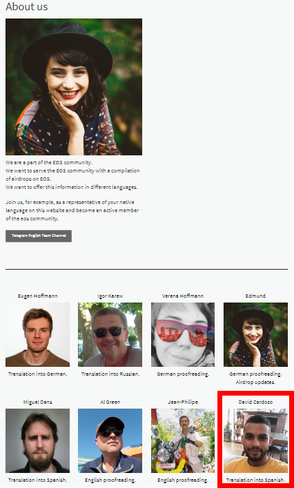 @eos.cafe is currently under airdrops and I already received 10,000 BEANS tokens for being part of their community. Everyone can receive their tokens from the airdrop by filling out the form found at airdropforeos.com and following the conditions explained on that form. Additionally, I collaborated with the website of airdropforeos translating some of its texts and I had the honor of being part of its community of collaborators together with Miguel Dans in the Spanish translation team.