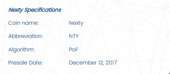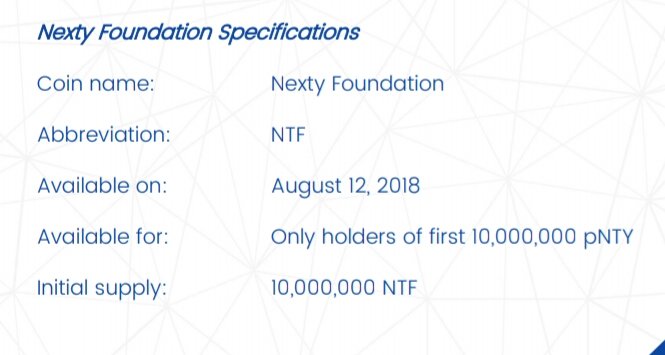 The second currency is the NTF (Nexty foundation) which is used for confirmation of transactions. Only holders of NTF can have the right to confirm transactions and unlike other networks where miners earn from the transaction costs per transactions, the Nexty platform doesn't work like that. To compensate NTF holders for the confirmations or mining of transactions, some amounts of crypto currencies are awarded to them as bonus for contributing to the confirmation system and these bonuses are generated by the Proof of Foundation (PoF) algorithm equivalent to the common PoW used by Ethereum and bitcoin networks.