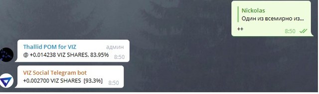 The process of rewarding another Telegram user is as simple as possible. VIZ Social bot functions in the chat. There, all you need to do in response to any user's message is to put one to five pluses. Each "+" is your 5% or another "energy usage step."