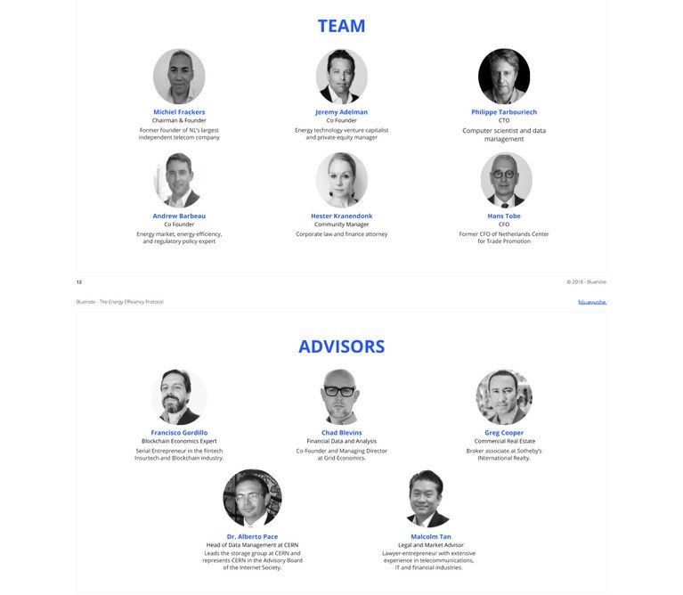 The Bluenote token is ERC20-compliant, utilizing smart contracts, which will be tradable under the ticker BNOW. Those buildings and devices that integrate the Bluenote Platform and share data are rewarded in Bluenote tokens. The buildings can then buy and use Bluenote tokens to purchase energy efficiency analytics on the Bluenote Protocol.