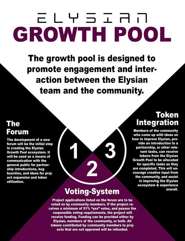 The growth pool is as an effective method of community integration. This allows supporters to provide a wider variety of campaigns. Consequently, the best projects provided will be voted on successfully and will benefit the entire Elysian ecosystem. Community input provides a much larger sample size of campaigns while using collaboration between community members and the team to build a mutually beneficial relationship.