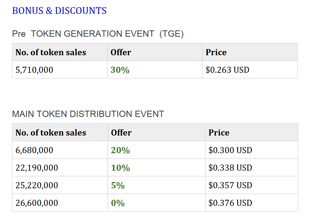 - Pre Sale Period: 07/01/2018 00:00 UTC to 28/02/2018 00:00 UTC