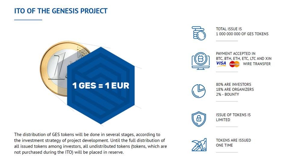 Fluctuations of courses or possible collapses in the market of cryptocurrencies can not affect the rate of GES tokens. The reason is that its value is formed on the basis of the value of real assets and stable positive economic performance of the GENESIS platform.