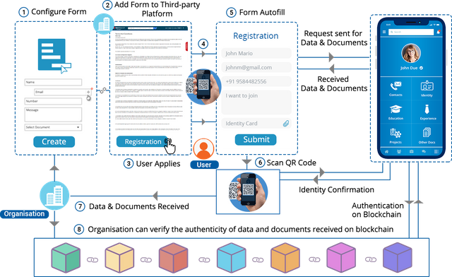 The User then has to digitally sign the application form to complete the application process. The digital signature is also stored on the blockchain.