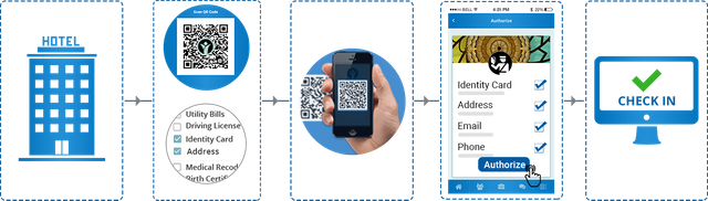 Hotel generates QR Code which encapsulates the identity & registration document requirements for Check In