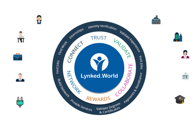 The Lynked.World eco system is a multi-faceted solution comprising of an entire application platform developed from ground up to be able to harness the features of blockchain technologies. Our platform is based on the Ethereum blockchain and comprises of feature rich modules solving real life problems around trust and authenticity of digital identities, documents and data for both consumers and corporates alike.