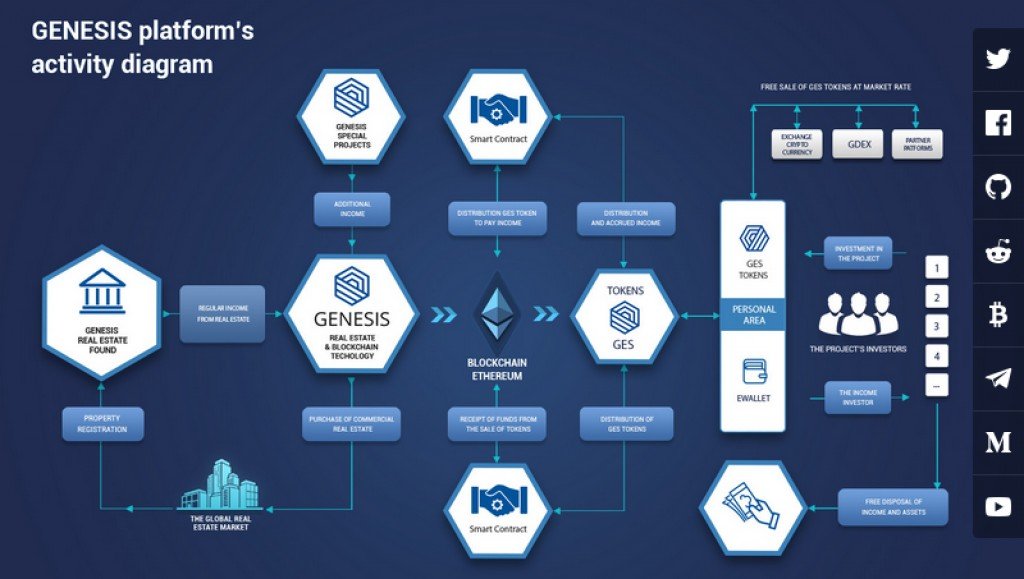 Since it depends on blockchain Genesis will offer GES tokens which can be purchased on their Pre-Sale or ICO. GES tokens will be ensured by resources, considered as a bit of real estate. So on the off chance that you claim a GES tokens you will possess your piece of real estate, as indicated by the measure of speculation. Presently best part, the holders of GES tokens will get benefit from the realization of unique ventures. This ought to raise from 25% up to 75% extra salary.
