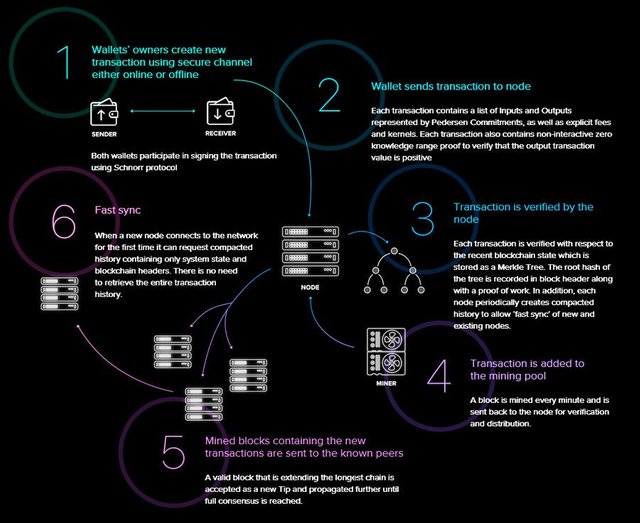 The MImbleWimble protocol aims at enabling privacy transactions while still able to provide a strong scaling solution to the blockchain so as to accommodate the increasing number of users.