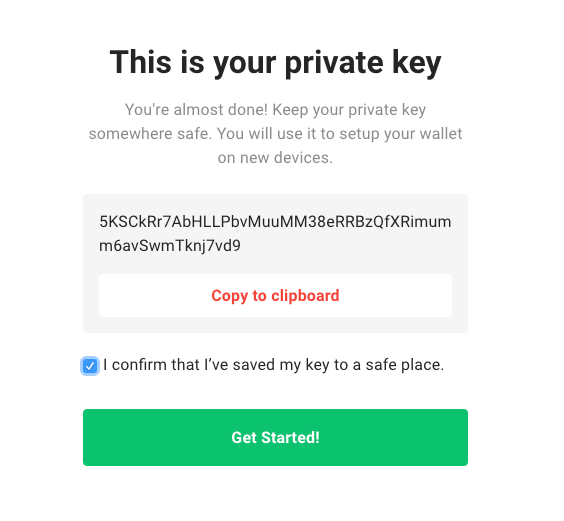 Step 6: You’ll be given the Private Key to your Scorum Wallet. Store this securely as we do not keep copies on our servers.