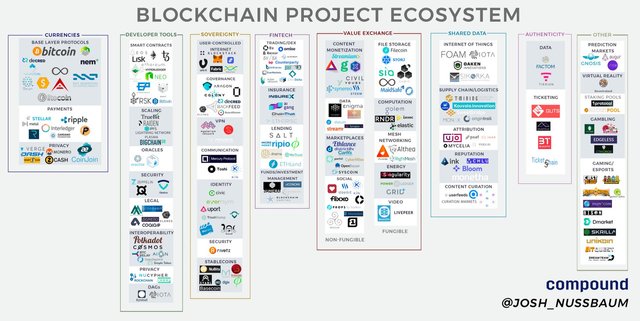 Each of the above dApps brings individuals together to produce some sort of outcome, they are all considered peer-to-peer (P2P) networks. Augur brings people together to create reliable predictions, Steem enables a profitable community of content creators, Brave produces a contribution system beneficial for all participants, and Storj and Golem brings people together to create a shareable ecosystem. All except Steemit run off the Ethereum blockchain. Which just goes to show how valuable of a platform Ethereum is. All but Storj (launching very soon) are available for anyone to use. This goes to show how far blockchain dApps have come, and how they're already beginning to revolutionize industries. As seen in the picture below, each of the dApps mentioned in this post have competitors. Although, I believe Augur, Steemit, Brave (along with Basic Attention Token), Storj, and Golem will continue to be leaders of their fields and great investments.