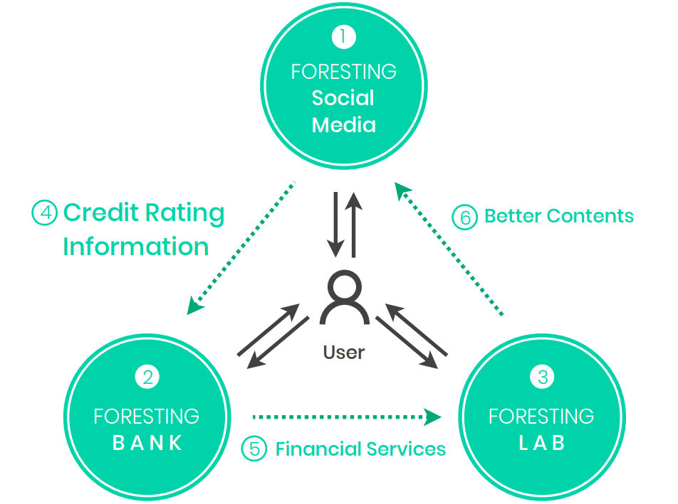 This system is responsible for financial services and platform services. The users' contributions to the platform will be assessed by the Foresting bank. The quality of the content and its contribution to the platform will decide which financial services can reach them.