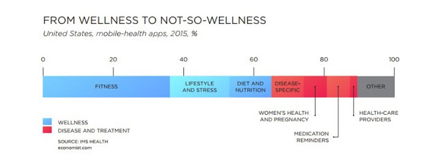 Data apa yang kita kumpulkan? Selama bertahun-tahun, sektor kesehatan yang tumbuh paling cepat adalah wilayah kebugaran dan kesehatan dengan pertumbuhan tahunan gabungan (CAGR) yang diproyeksikan sebesar 48,1% 4. 65% dari semua aplikasi mHealth di AS terhubung ke layanan kesehatan, yang memiliki 36% total aplikasi Kategori teratas juga mencakup penurunan berat badan, olahraga, kesehatan wanita, tidur dan meditasi.