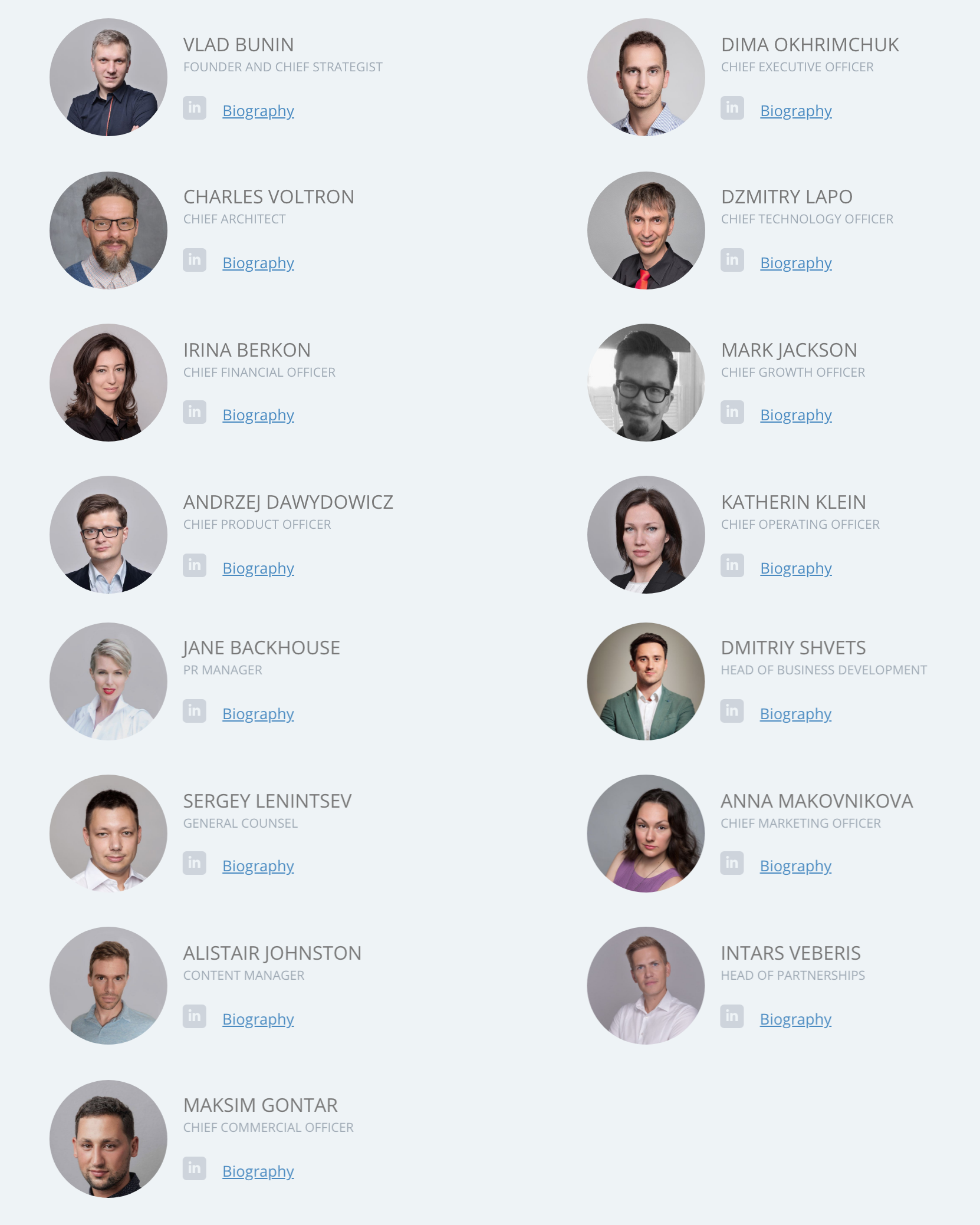 If we talk about the team of this project, it is safe to say that it consists of professionals. The founder of this project is Vlad Bunin, who has more than 19 years of experience in the banking sector, as well as in insurance and aviation fields. At the same time, Vlad is not only a member, but also a co – founder of such a company as Hedge Capital. Thus, we are once again convinced that this person has vast experience in managing multi-million budgets. The second most important person in the project Platio, is Dima Okhrimchuk. This person also has a large stock of knowledge, and to be more precise, more than 10 years of experience in the field of technology and Finance. Prior to that, he took an active part in the development of one of the largest platforms photostock. He is also a proud owner of the MBA degree. I will not list all other participants of the project now, you can get acquainted with them in more detail in Whitepaper.