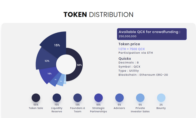 Price for token: 1 ETH = 7500 QCX, bonus system is provided
