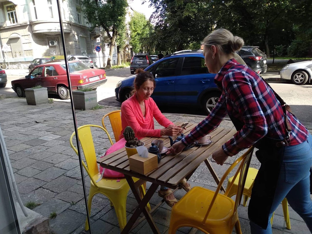 So, not far from Kyivska Street in Konovalets Street directly opposite the square in Japan is a small cozy cafe. I came across it because of its stylish bright contrasting design.